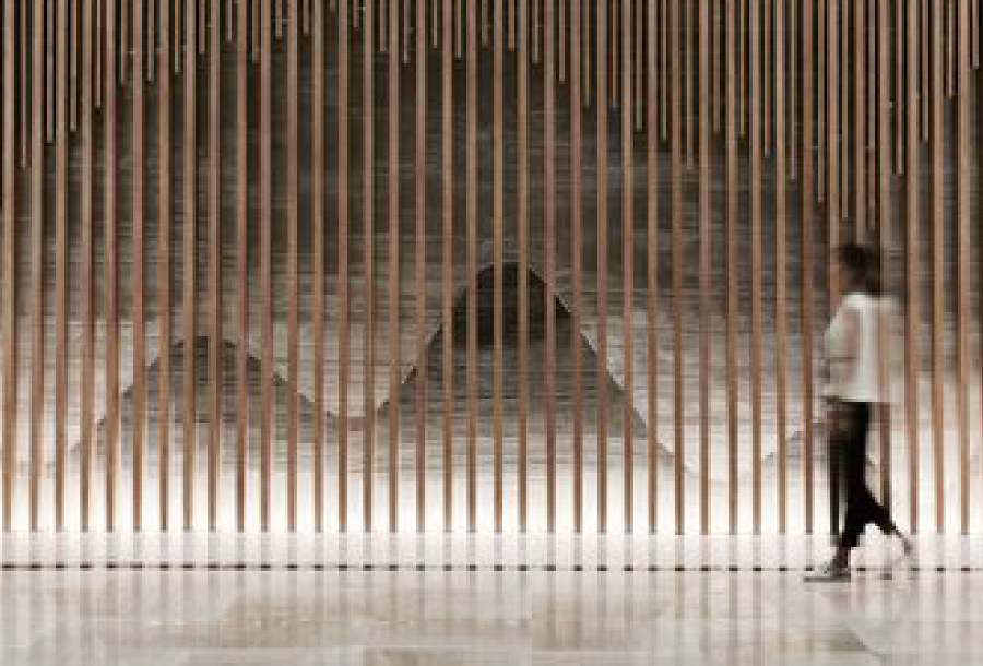 あの竹林のような効果を求め、「竹」と「ウォール」の組み合わせに着目しました。 「ウォール」は外の世界との視線を遮る効果もありますが、吸音性に優れた塗り壁の素材を採用し、 人や車の高さの音を効率的に吸収。上空部分は竹そのものの笹の葉の重なりで心地いい音色を引き出すことで、 竹林の効果に近づけました。街の喧騒を遮断し、心地いい環境をつくるため、密度の高い竹のスクリーンの配置をランドスケープに盛り込んだのです。